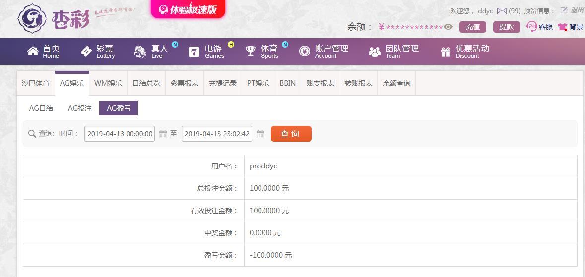 [|输单补偿] 4.13日杏彩亏损100元 |